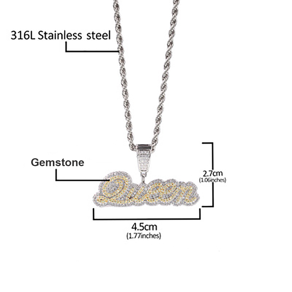 - COLLOCATE TO SHOW PERSONALTY FOR ALL OCCASTION:Iced out name necklace is an excellent accessory to hip hop fashion collocation. Most people wear with other pendants to get a shine and personalized. Especially suitable for Halloween party, hip hop fashion performance, music concert, birthday gift for those who are fond of hip hop fashion elements.