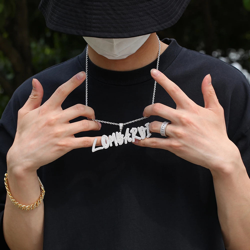 - COLLOCATE TO SHOW PERSONALTY FOR ALL OCCASTION:Iced out name necklace is an excellent accessory to hip hop fashion collocation. Most people wear with other pendants to get a shine and personalized. Especially suitable for Halloween party, hip hop fashion performance, music concert, birthday gift for those who are fond of hip hop fashion elements.